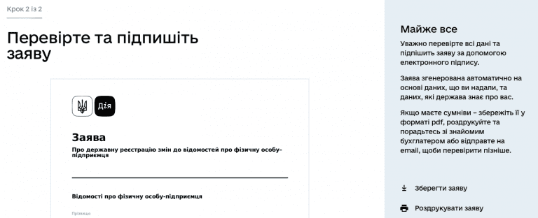 «зараз особа повинна авторизуватися в «дії» і зареєструвати фоп, а потім окрема людина, реєстратор, повинен переглянути всі введені дані і прийняти подальші рішення.